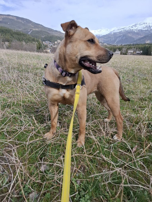 Je suis une jeune croisée staffie née en 2024 (enfin, c’est ce que pense le vétérinaire, car ça un mystère 😜). Avant d'arriver à Audacce, ma vie était un peu floue… Je me suis retrouvée errante près de Manosque, toute seule, sans identification et personne ne m'a reclameé. Après plusieurs mois en fourrière, je suis enfin arrivée au refuge début 2025 pour trouver ma vraie famille.
