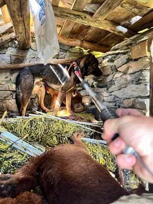 Dans la cabane, j'étais avec Choucas, mon copain d'infortune (également pris en charge et avec moi au refuge). Pour la petite histoire, il a été nommé d'après nos sauveteurs (l'hélicoptère du PGHM est le Choucas), et moi, d'après nos soigneuses qui nous ont ramenés à la vie. Il y a quelques photos de ce sauvetage d'ailleurs, vous verrez à quel point j'étais maigre (et surtout à quel point je suis belle aujourd'hui) !